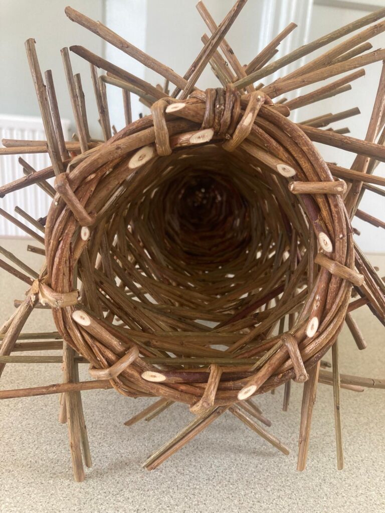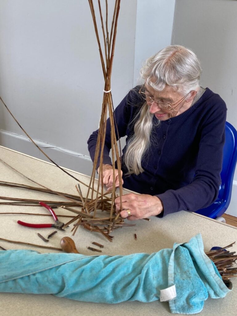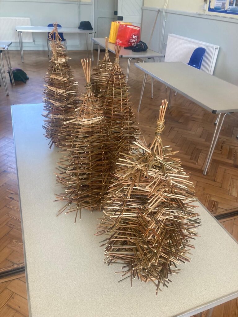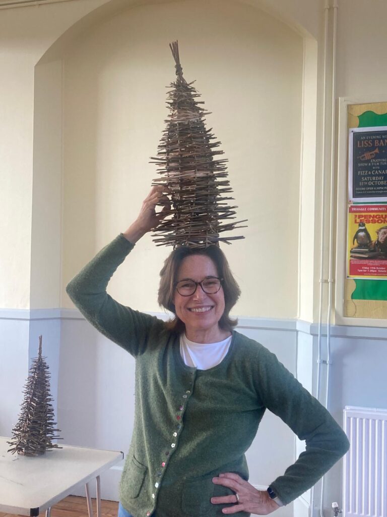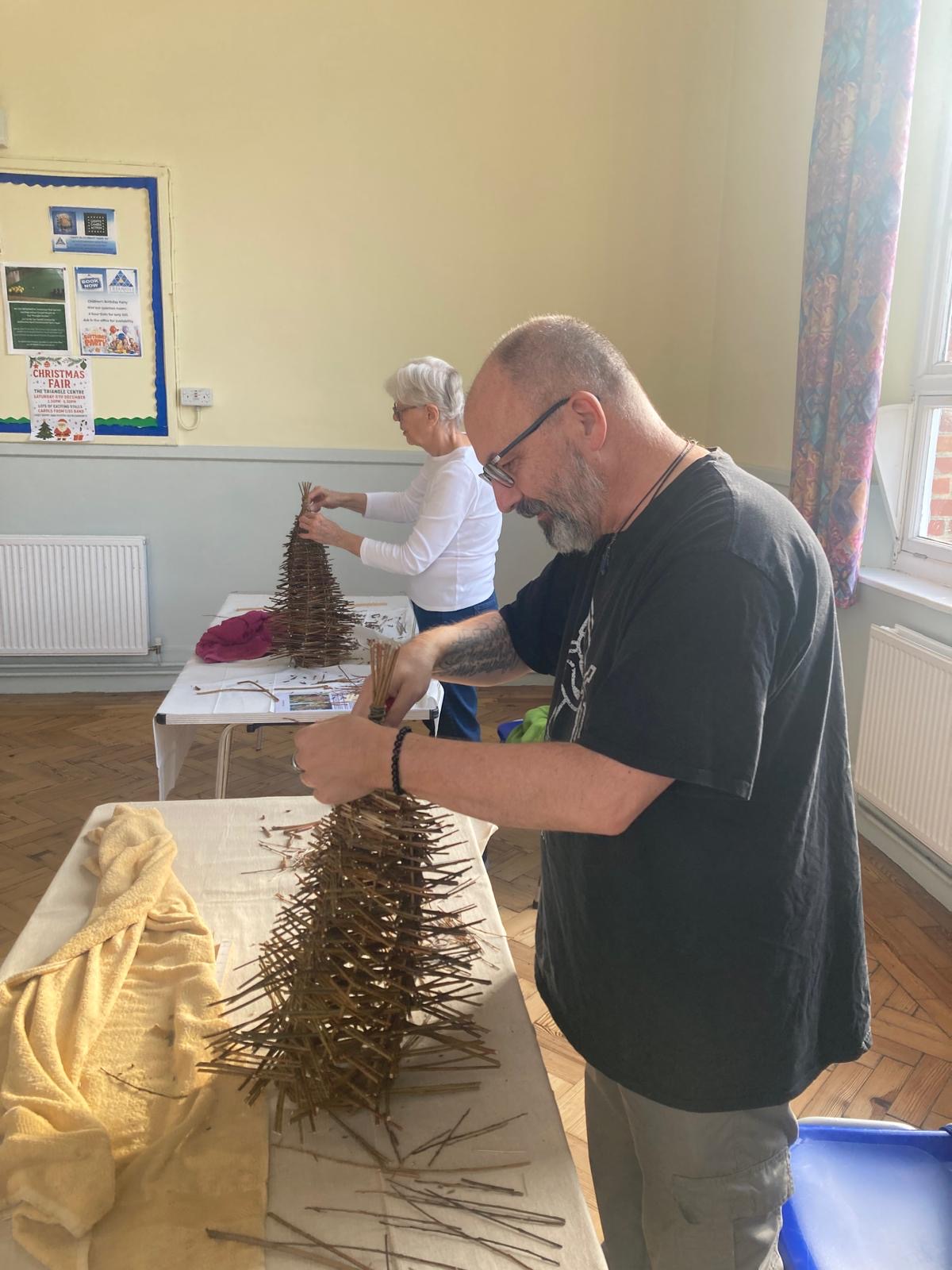A small group took all the available places on Linda Mills “Willow Christmas Tree” workshop. Linda ran a demonstration of her basket weaving talents earlier this year. At this workshop all the participants crafted a Christmas tree from willow sticks – just in time for the festive season. You can see from the photos that the group enjoyed the event, and all produced beautiful tree.